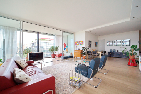 Het balkon van circa 6 m² is gelegen op het zuiden en bevindt zich op de 10e verdieping. Geniet hier van de ochtendkoffie of ontspan ’s avonds met een drankje in de laatste zonnestralen.